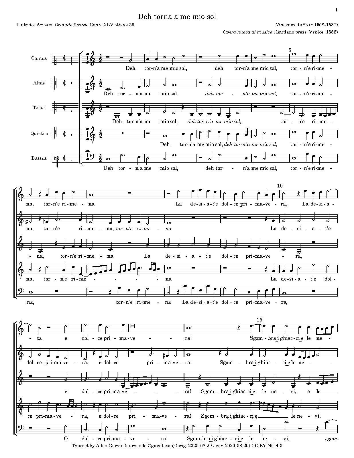 | First Publication | 1556 in Opera nuova di musica (Antonio Gardano press, Venice) |