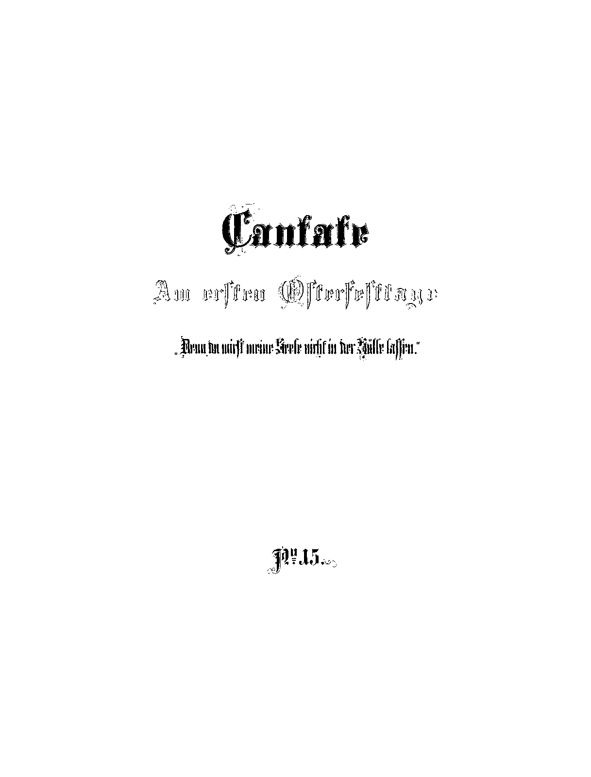 9 more: 2 .Recitativo: 'Mein Jesus ware tot' • 3. Duetto Aria: 'Weichet, weichet, Furcht und Schrecken' • 4. Aria: 'Entsetzet euch nicht' • 5. Aria: 'Auf, freue dich, Seele, du bist nun getröst' • 6. Terzetto: 'Wo bleibet dein Rasen du höllischer Hund' • 7. Duetto Aria: 'Ihr klaget mit Seufzen, ich jauchze mit Schall' • 8. Sonata (Instrumental) • 9. Quartet Recitativo: 'Drum danket dem Höchsten, dem Störer des Krieges' • Engraving files (MuseScore)