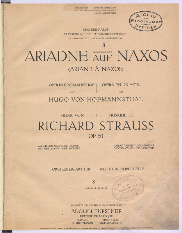 | First Performance. | 1912-10-25 in Stuttgart, preceding Ariadne auf Naxos, Op.60 1918-04-09 in Berlin, Deutches Theater