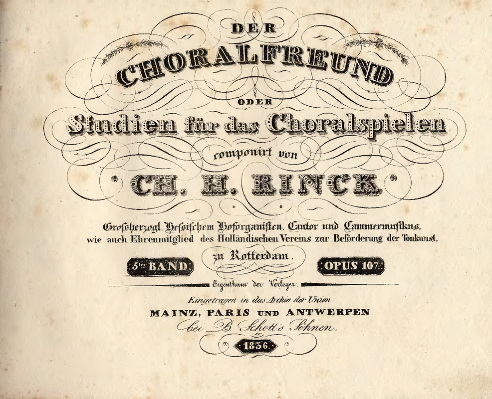 | Alternative. Title | Der Choralfreund oder Studien für das Choralspielen componirt von CH. H Rinck [...] 5ter Band |