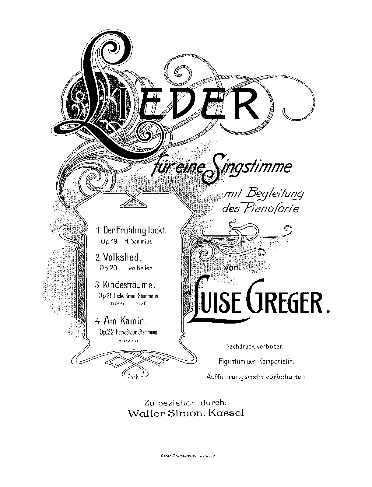 Der Frühling lockt was included in Greger's Lieder-Album published in 1906 (Monatsbericht (1906), p.663).
