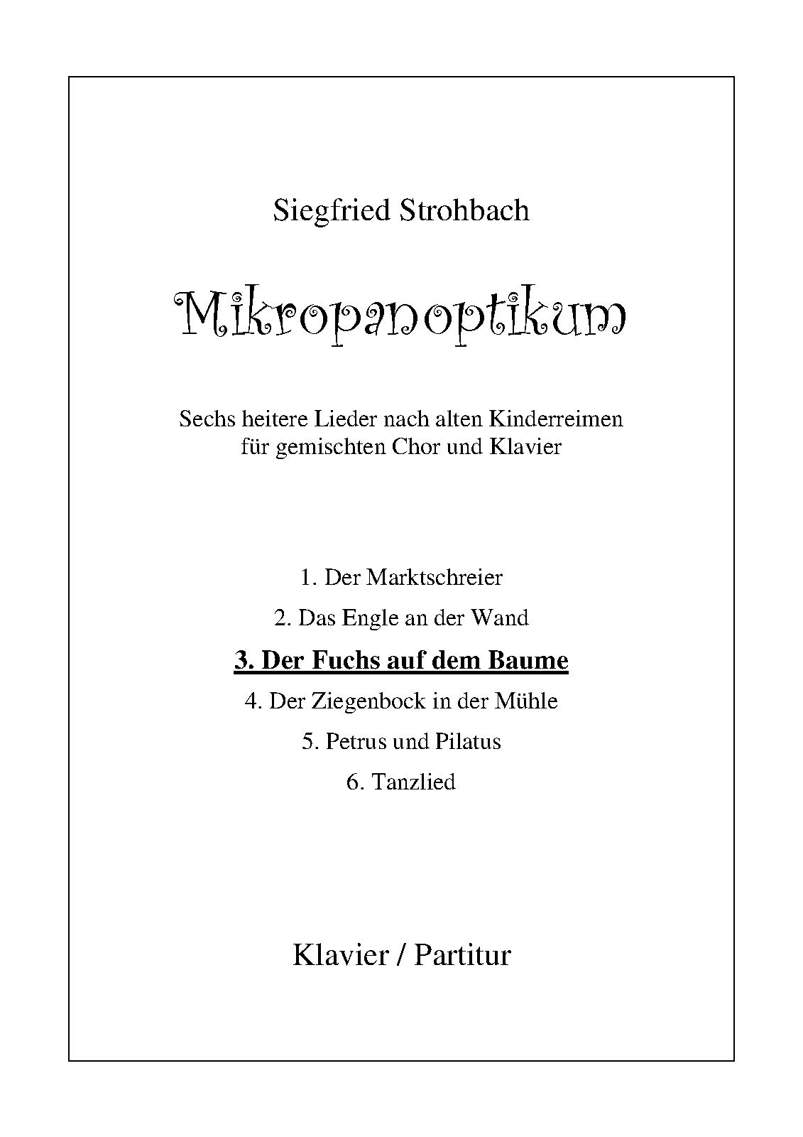 | Work Title | Der Fuchs auf dem Baume, from Sechs heitere Lieder nach alten Kinderreimen |