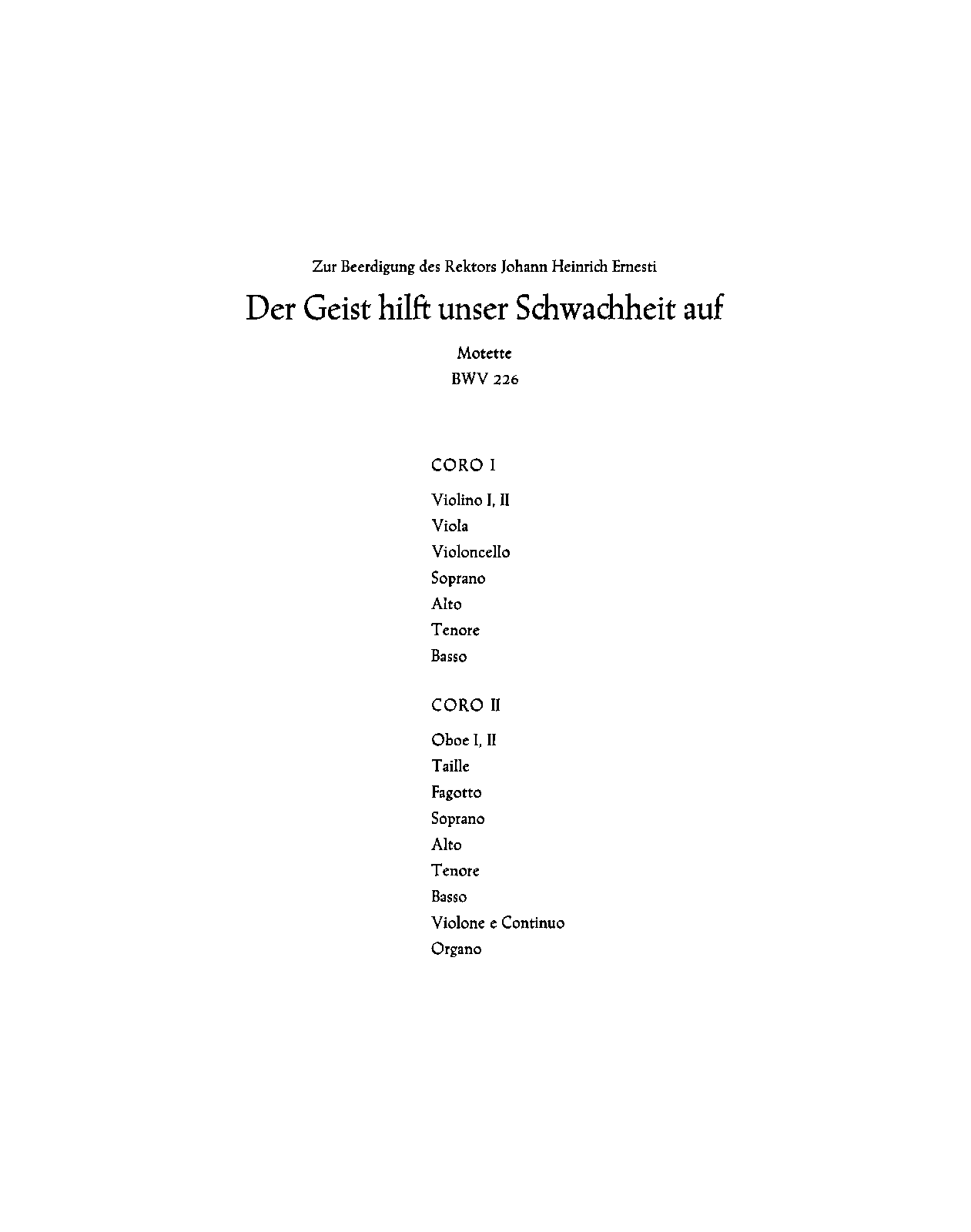 Opus/Catalogue NumberOp./Cat. No. BWV 226 ; BC C 2