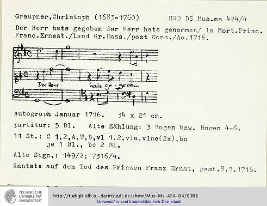 | Opus/Catalogue NumberOp./Cat. No. | GWV 1175/16a |