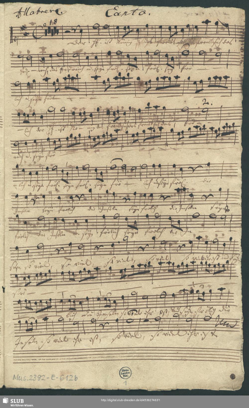 | Manuscript Sources | D-AG Mus.A.2:104 D-Dl Mus.2392-E-612 (Bach arrangement) D-Dl Mus.2392-E-612a (includes soloists and larger ensemble, possibly by Johann Siegmund Opitz) |