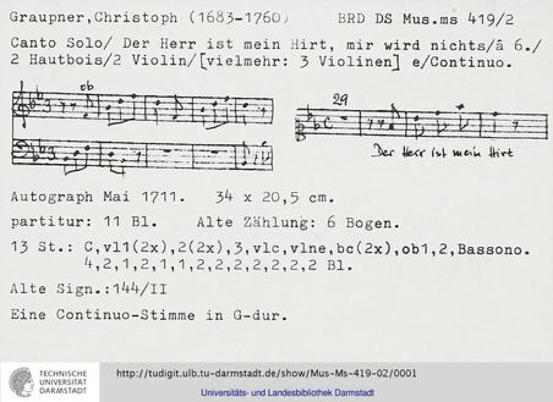 | Opus/Catalogue NumberOp./Cat. No. | GWV 1140/11 |