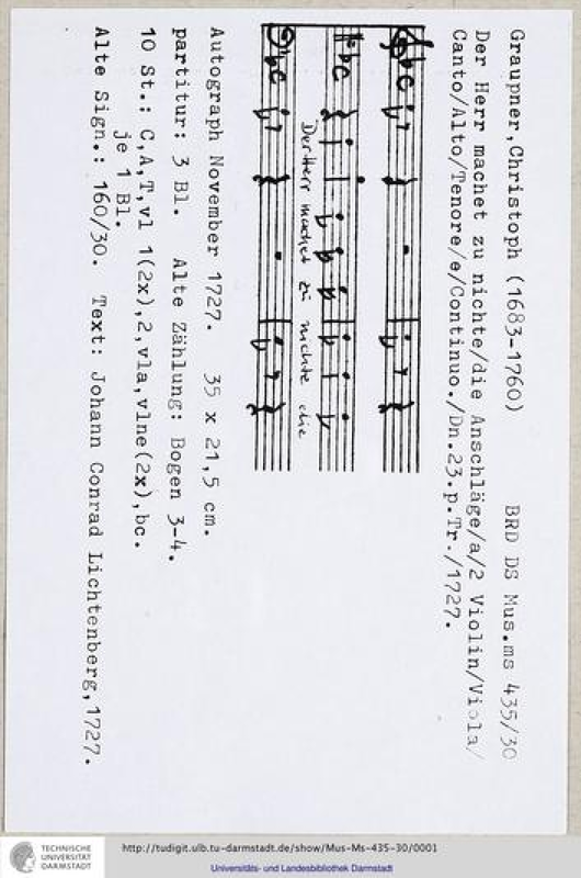 | Librettist | Johann Conrad Lichtenberg (1689-1751) |
