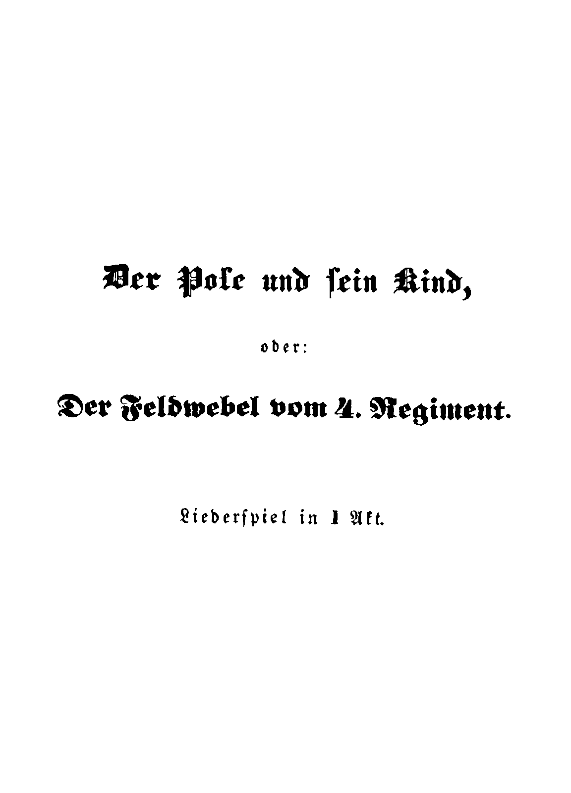| Alternative. Title | Der Pole und sein Kind, oder Der Feldwebel vom 4. Regiment; Liederspiel in 1 Akt; Vaudville |