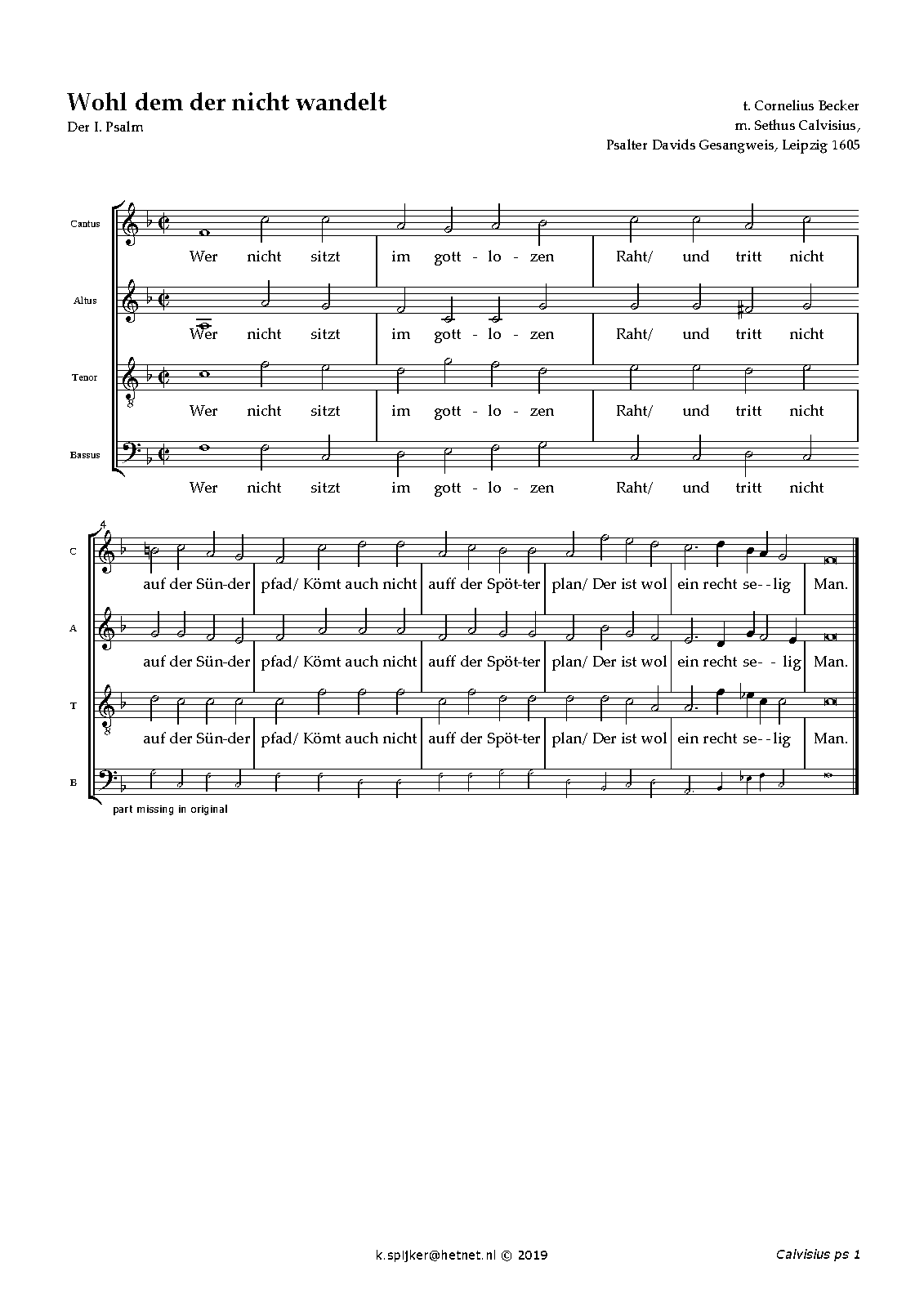 Der Psalter Davids Gesangweis, vom Herr D. Cornelio Beckern [..] verfertiget, Jetzo auffs new mit vier Stimmen abgesetzet durch Sethum Calvisium