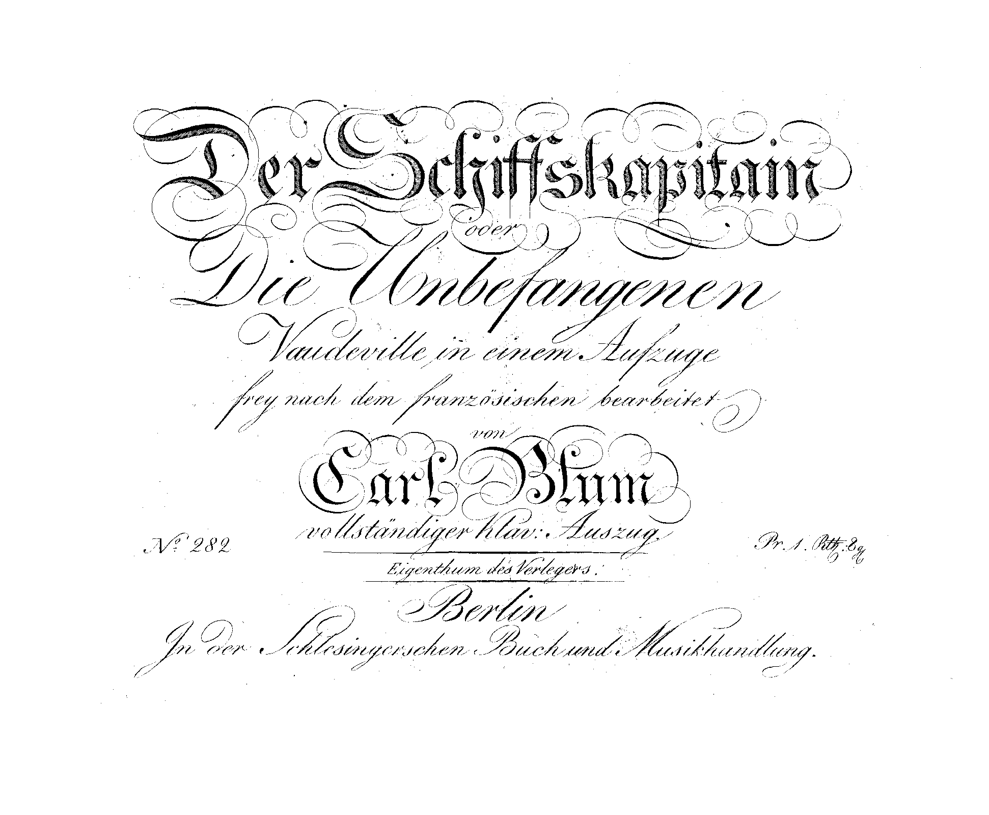 | Alternative. Title | Der Schiffskapitain oder Die Unbefangenen, Vaudeville von Carl Blum |