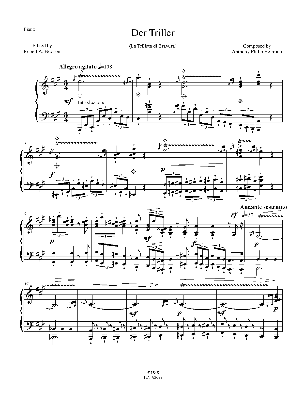 - Allegro agitato - Andante sostenuto - The Trill Waltz, Andantino - Allegretto scherzando quasi Allegro - Quasi Presto - Cadenza, Andantino con Espressione - Allegro - Andantino - Allegro - Presto - Andantino non tanto - Presto - Prestissimo - Moderato - Interludio brillante - Allegro assai - Entrata, Allegro moderato - God Save the Queen - God Bless The Queen, Grave sostenuto - Largo con molta espressione e sempre ben legato - Senza Tempo fisso, con molta grazia - Presto con forza - Largo quasi ad libitum