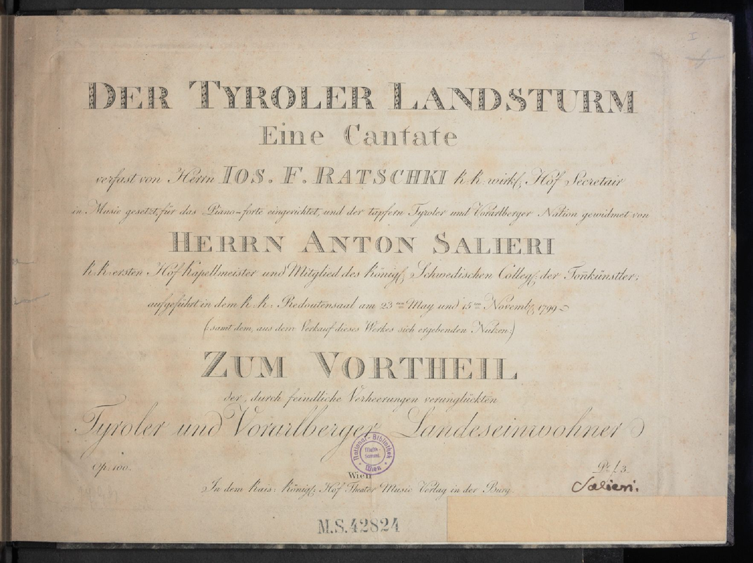 Eine Cantate verfast von Herrn Jos. F. Ratschki, k.k. wirkl Hof Secretair in Music gesetzt