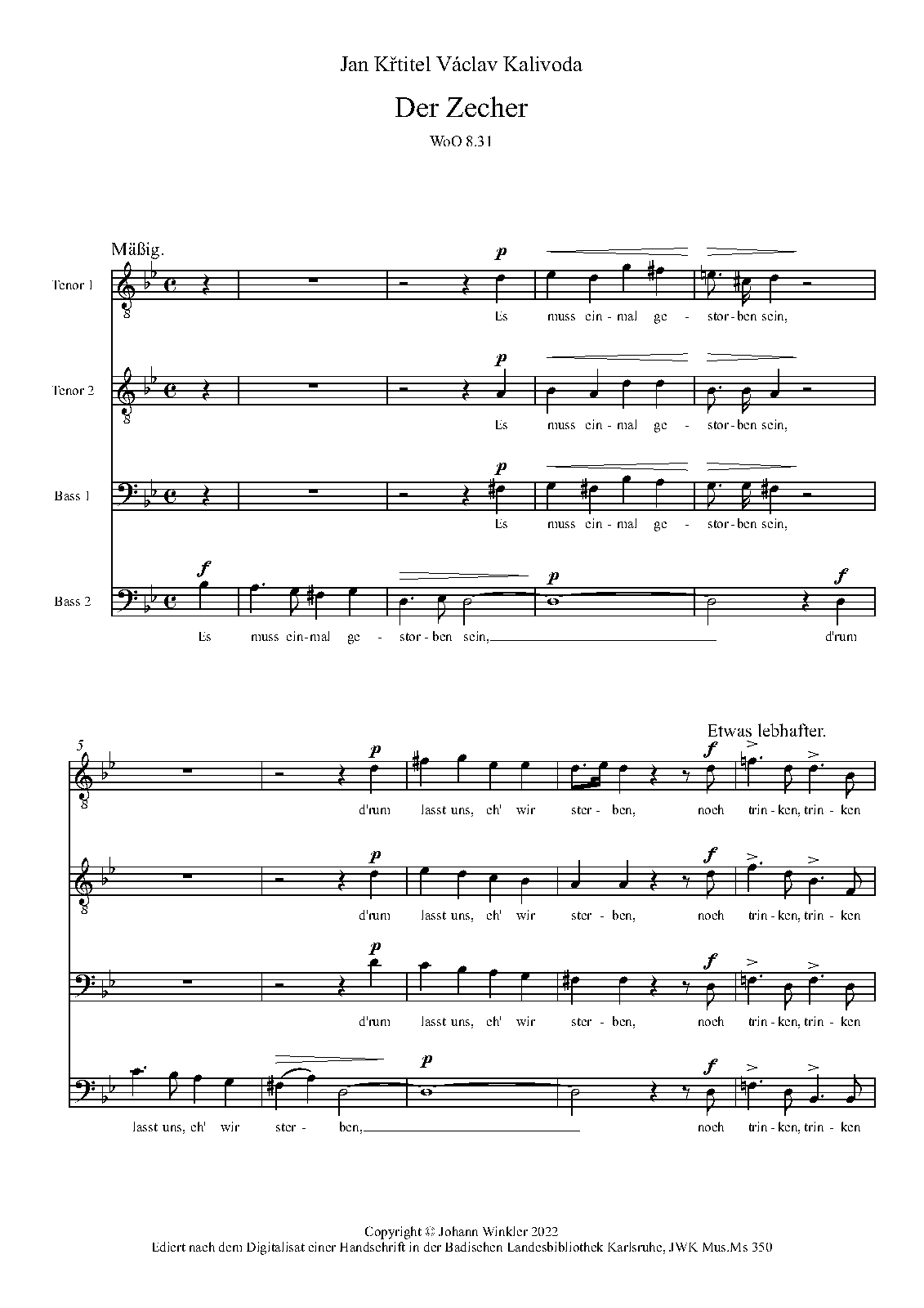 | Extra Information | Der Zecher is assigned WoO VIII/31 by BLB, but BLB also assigns Trauermarsch that catalogue number. The IMSLP list of works agrees with BLB about the catalogue number for Trauermarsch, but assigns Der Zecher as WoO VIII/39 instead. Perhaps the BLB metadata is inaccurate here? (That is, is WoO VIII/39 the correct catalogue number for Der Zecher?) |