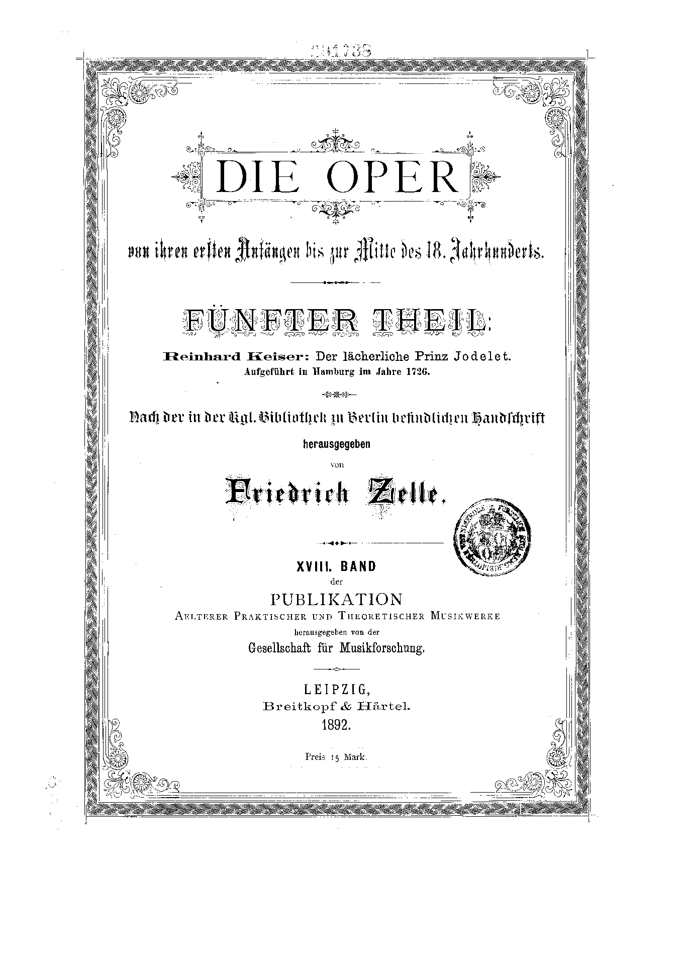 Der lächerliche Prinz Jodelet; Keiser, Reinhard, 1674-1739. Jodelet