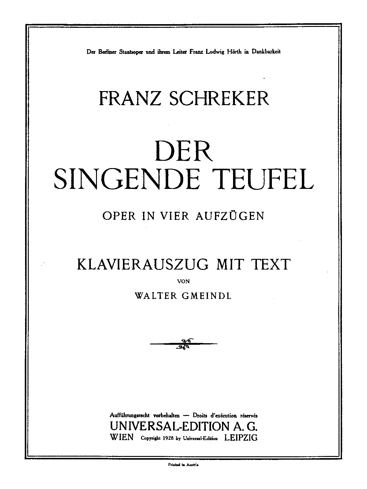 | Dedication | Der Berliner Staatsoper und ihrem Leiter Franz Ludwig Hörth (1883–1934) in Dankbarkeit |