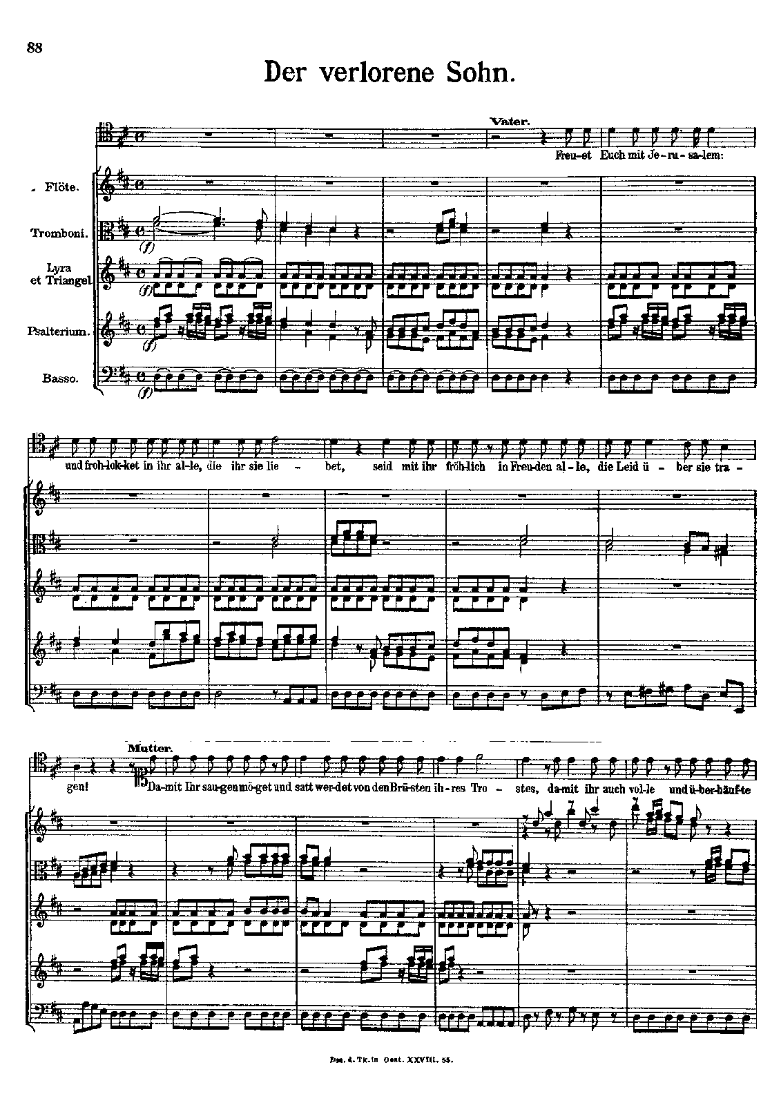 1. Freuet Euch, mit Jerusalem (TSS w/ flöte, 2 tromboni, lyra & triangle, psalterium and BC) 2. (T w/ trombone, 2 viole & VC col Basso)