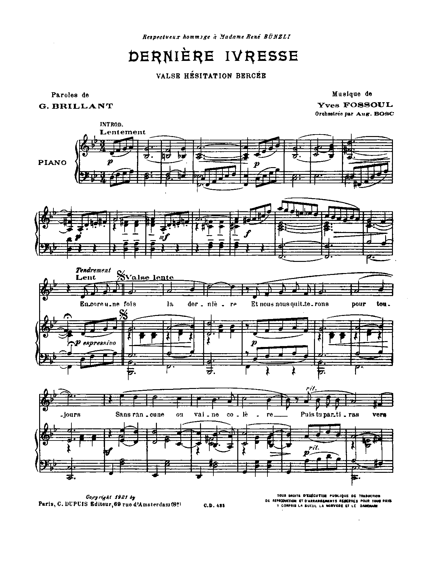 Publisher. Info. Paris: C. Dupuis, 1921. Plate C.D.435.