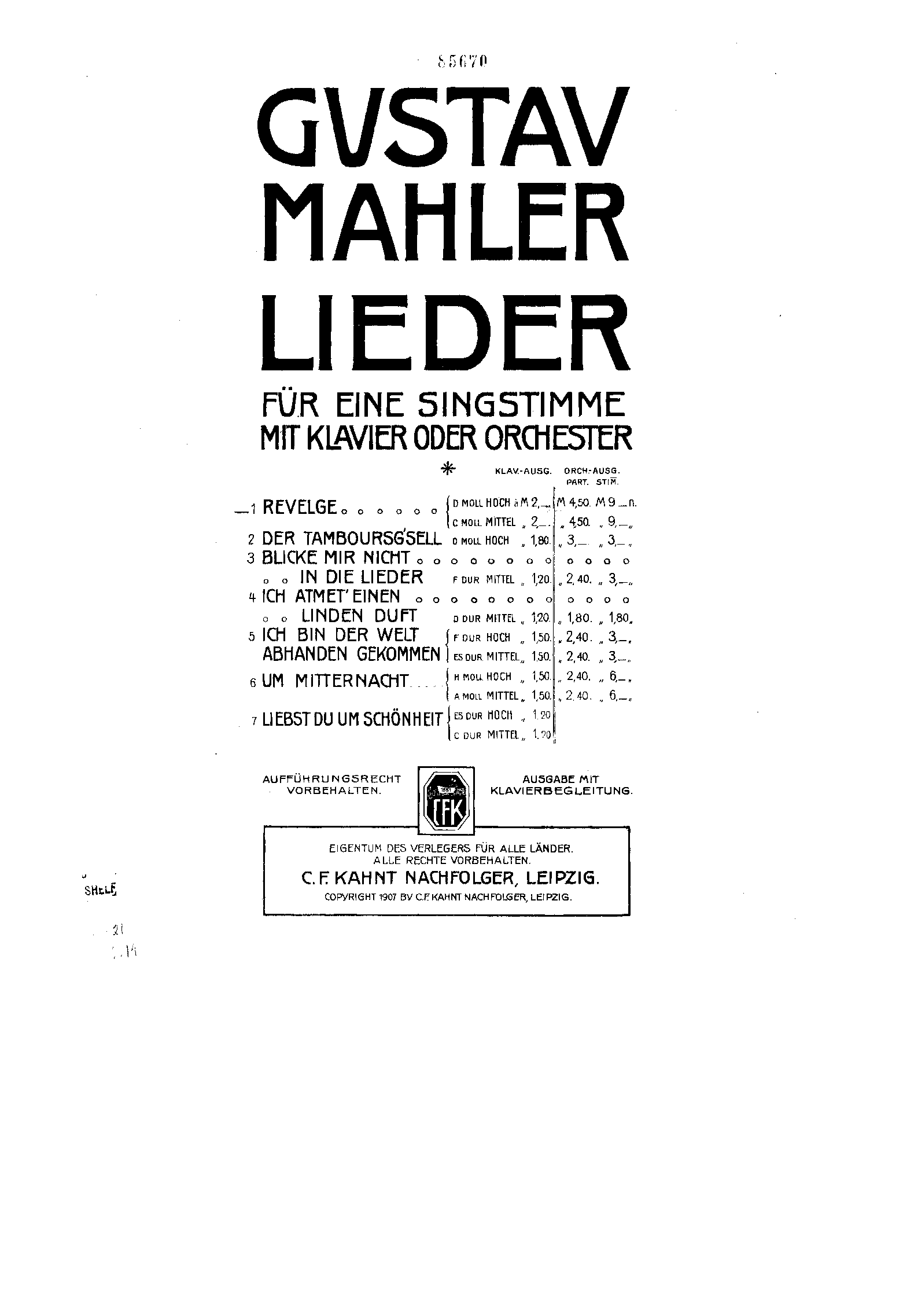 GMW (O) 21-29, 32-36, 38 (Orchestral Version) ; GMW (K) 21-29, 32-36, 38 (Piano Version)