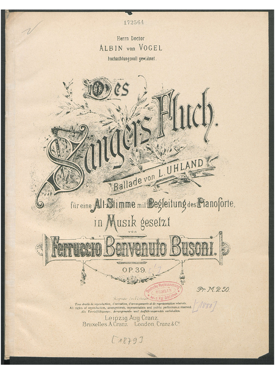 | Alternative. Title | Des Sängers Fluch. Ballade von L. Uhland für eine Alt Stimme mit Begleitung des Pianoforte |