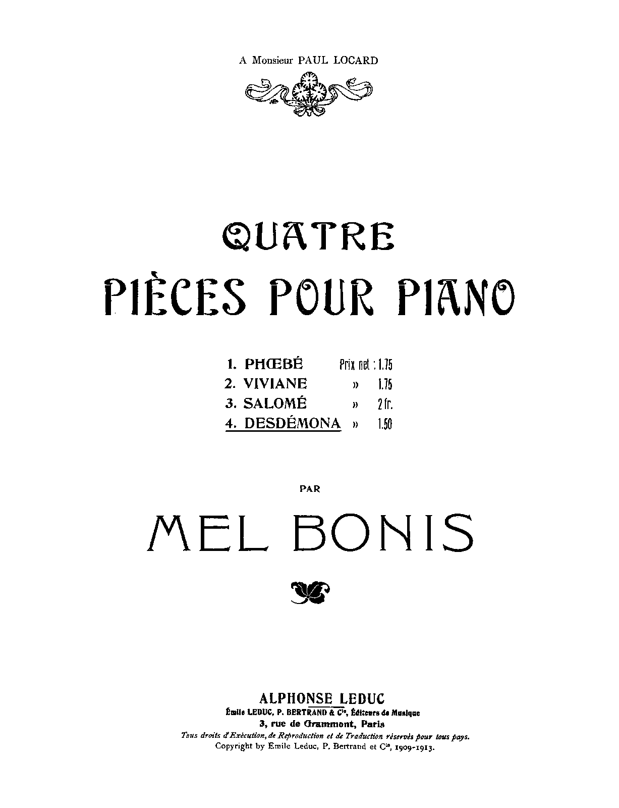 | Genre Categories | Pieces; For piano; Scores featuring the piano; For 1 player |