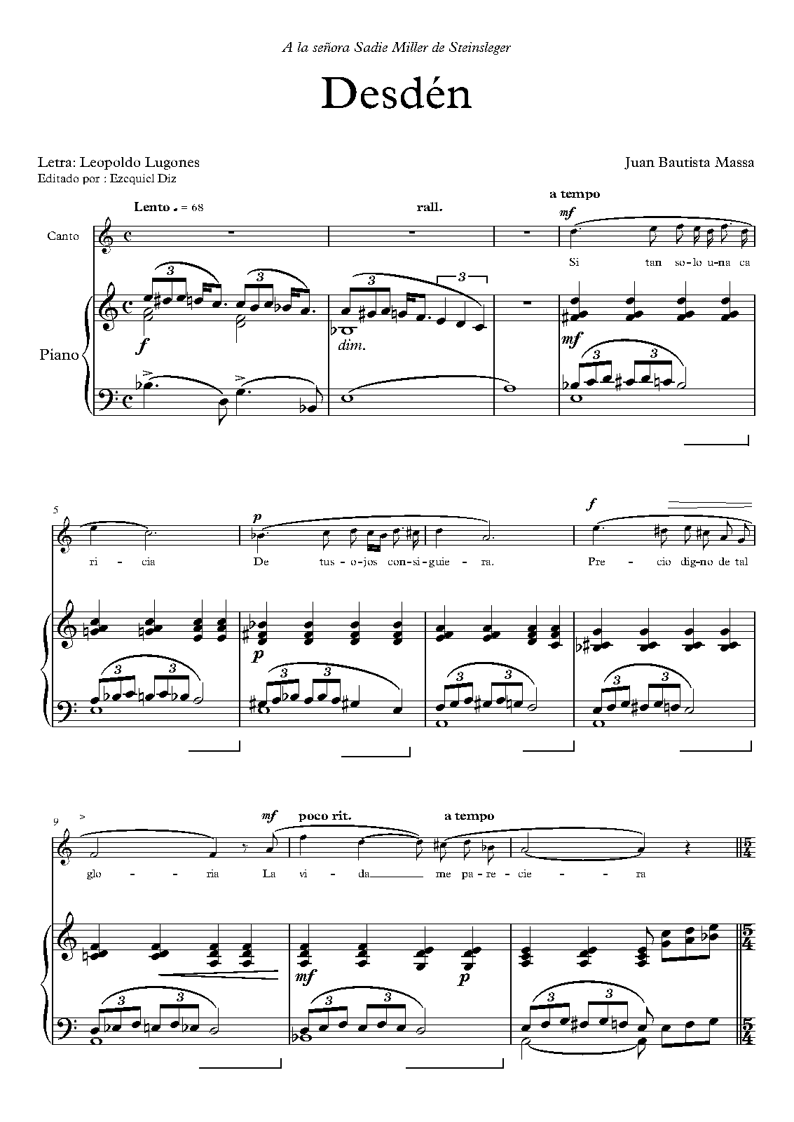 | Dedication | A la señora Sadie Miller de Steinsleger |