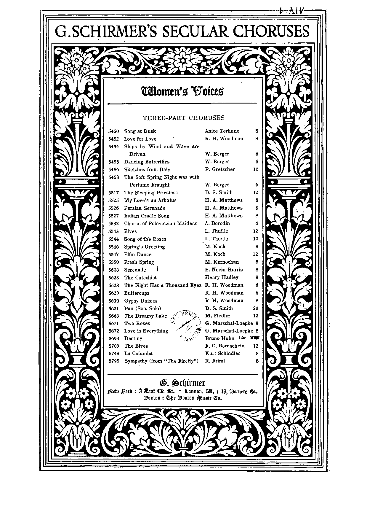 Publisher. Info. New York: G. Schirmer, 1912. Plate 23490.