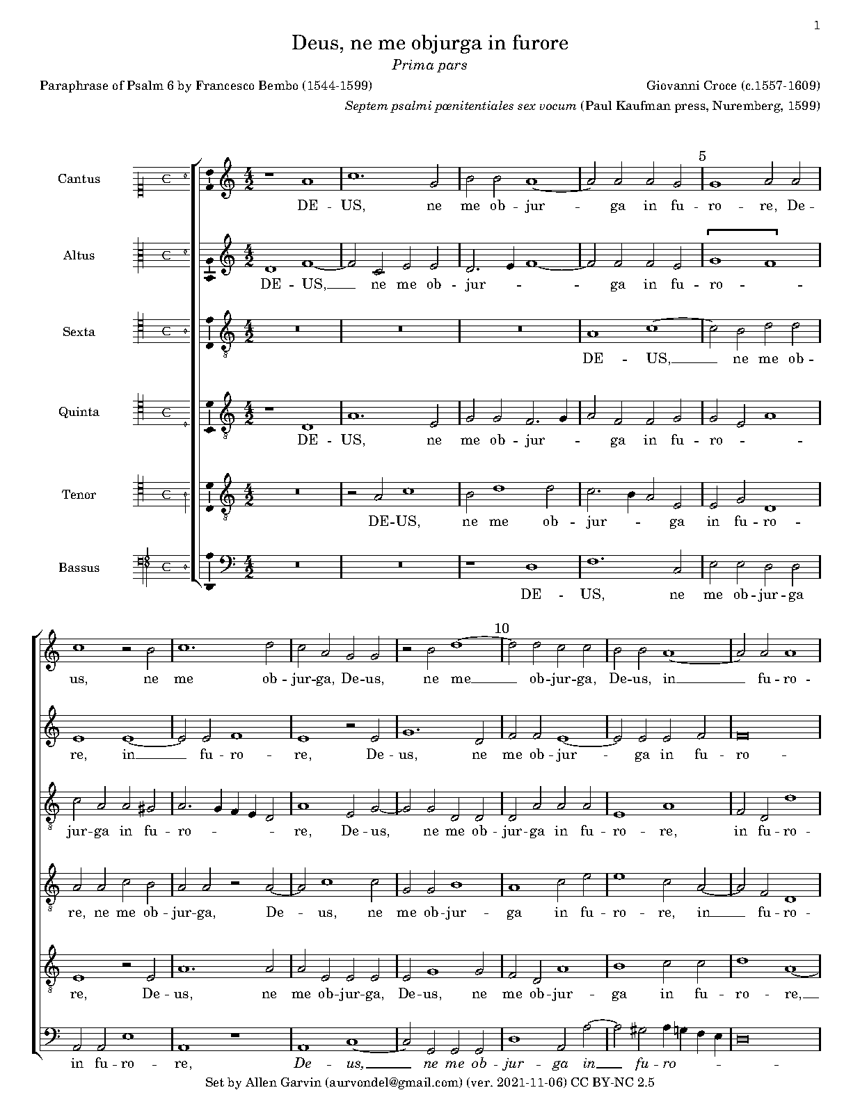 | First Publication | 1599 in Septem psalmi pœnitentiales sex vocum (Nuremberg: Paul Kaufman press, Nuremberg) |
