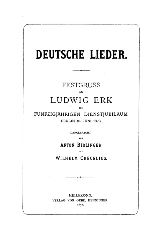 German folksongs harmonized by Anton Birlinger & Wilhelm Crecelius for Ludwig Erk