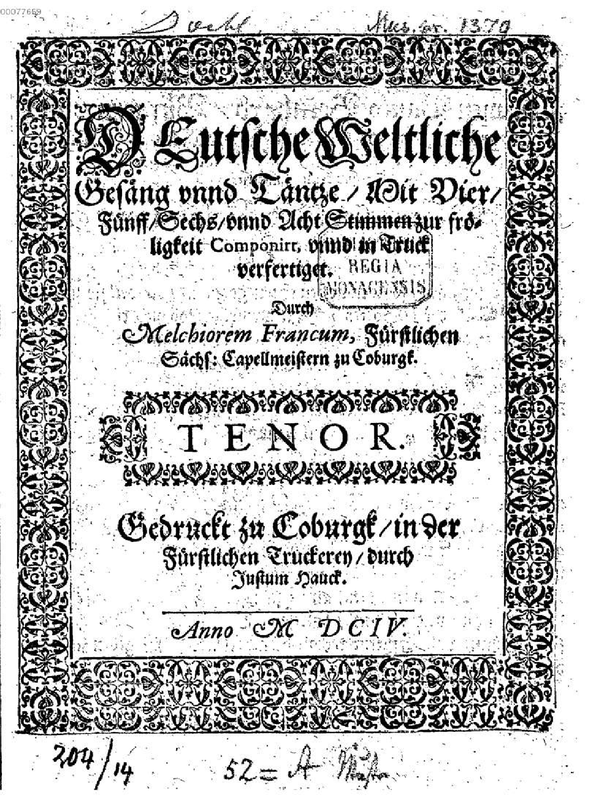 | Work Title | Deutsche Weltliche Gesäng und Täntze |
