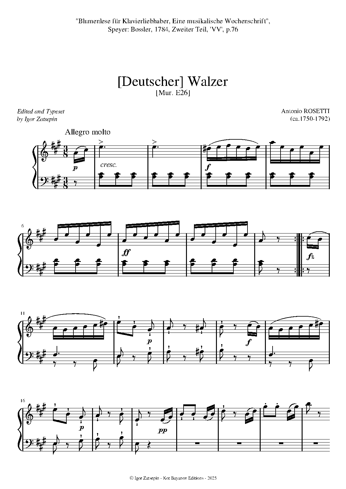 | Extra Information | "Blumenlese für Klavierliebhaber...", Speyer: Bossler, 1784 |