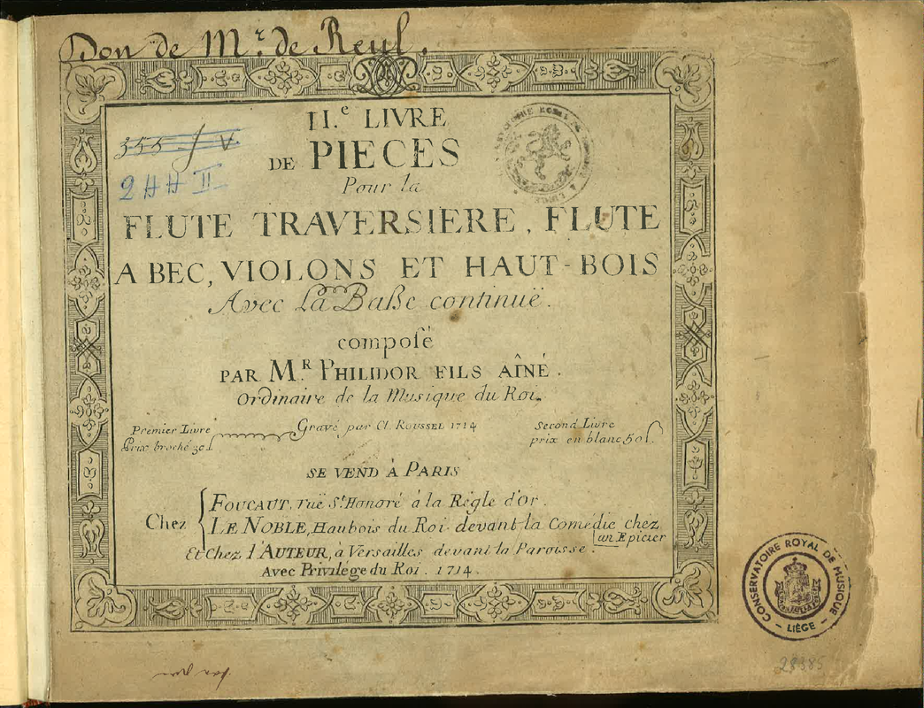 | Alternative. Title | Deuxième livre de pièces pour la flûte traversière, flûte à bec, violons et haut-bois, avec la baße continuë |