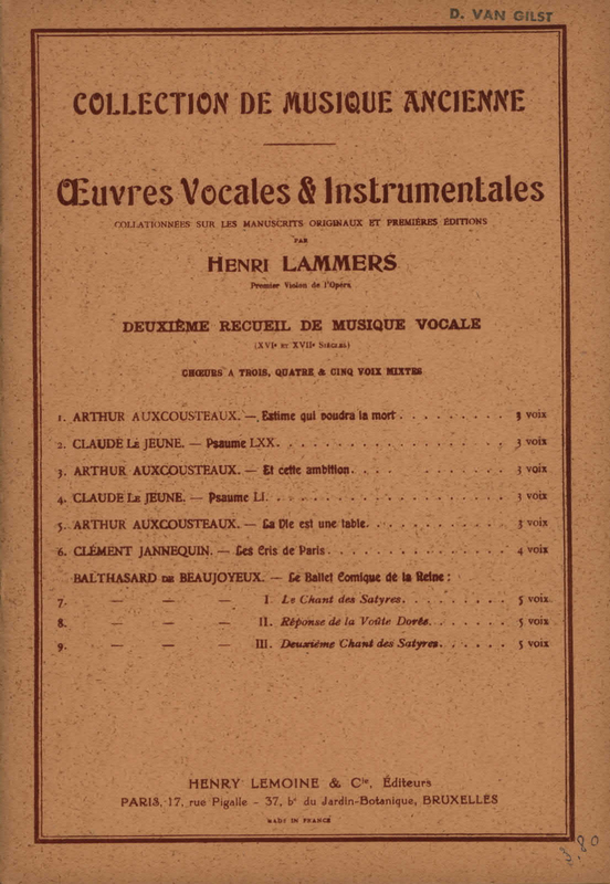 Collection de musique ancienne chez Henry Lemoine & Cie – Chœurs sans accompagnement.