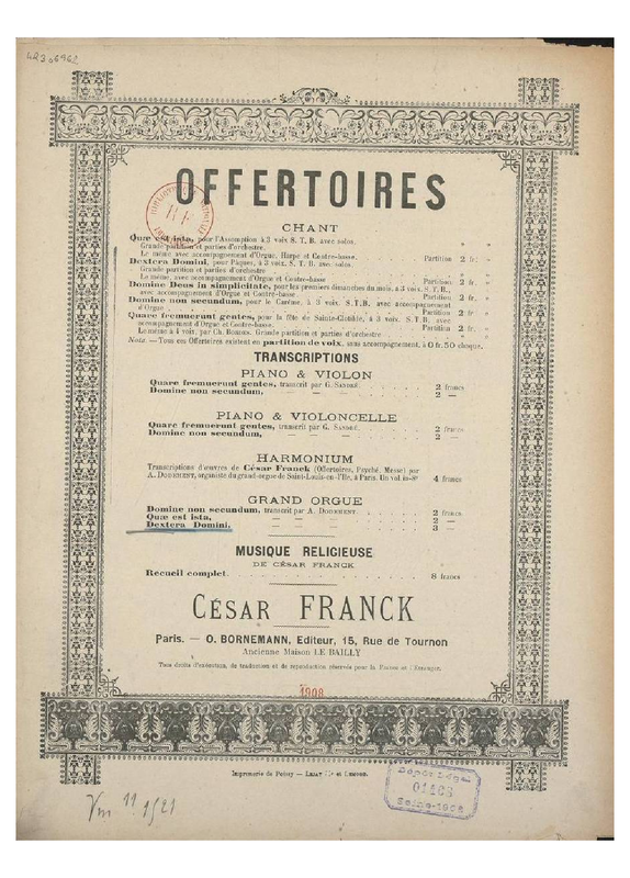 Offertoire, pour le Saint Jour de Pâques, pour soprano, ténor et basse avec orchestre / orgue et contrebasse