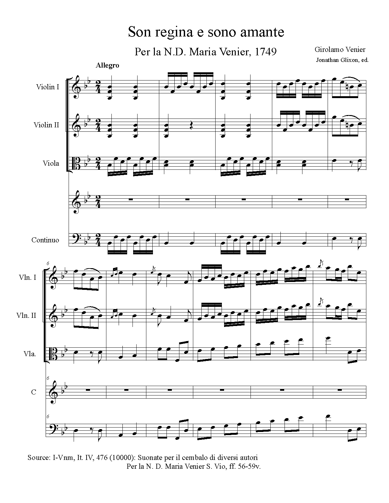 According to Wikipedia, most of Venier's works for orchestra were strings and continuo, so the assumption here is that this is the instrumentation of the unlabelled staves.