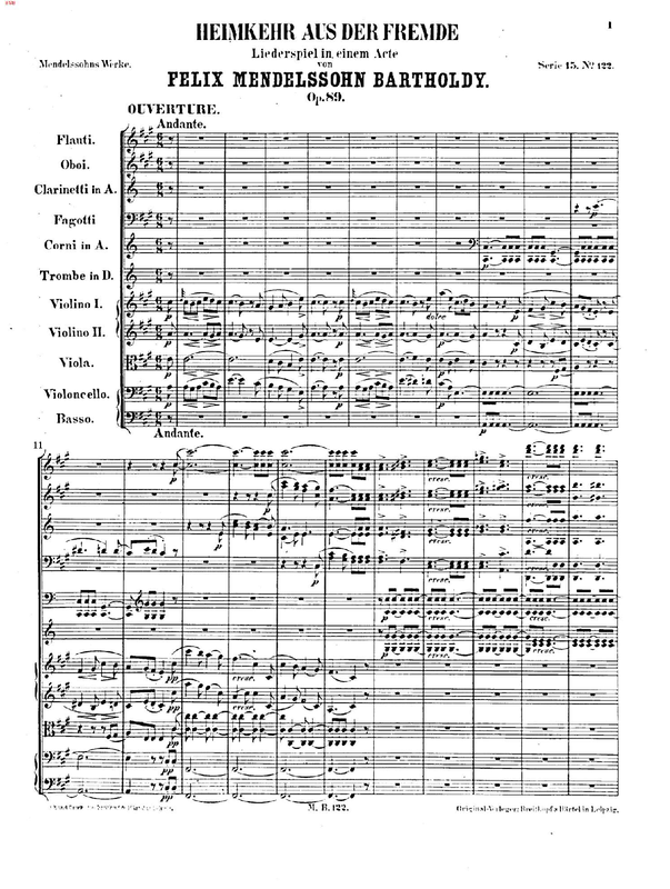 Written for private performance at Mendelssohn's parents' silver wedding anniversary. Parts were printed for this first, private performance by J. G. Brüschcke in 1829.