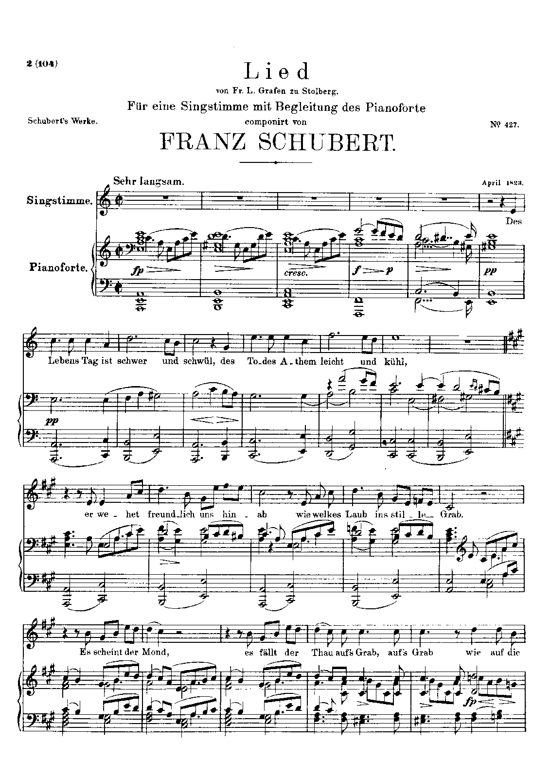 Publisher. Info. Schubert's Werke, Serie XX, Band 7. 1822-23 b.z. 'Die schönen MĂŒlerin', No.427 (pp.104-05)