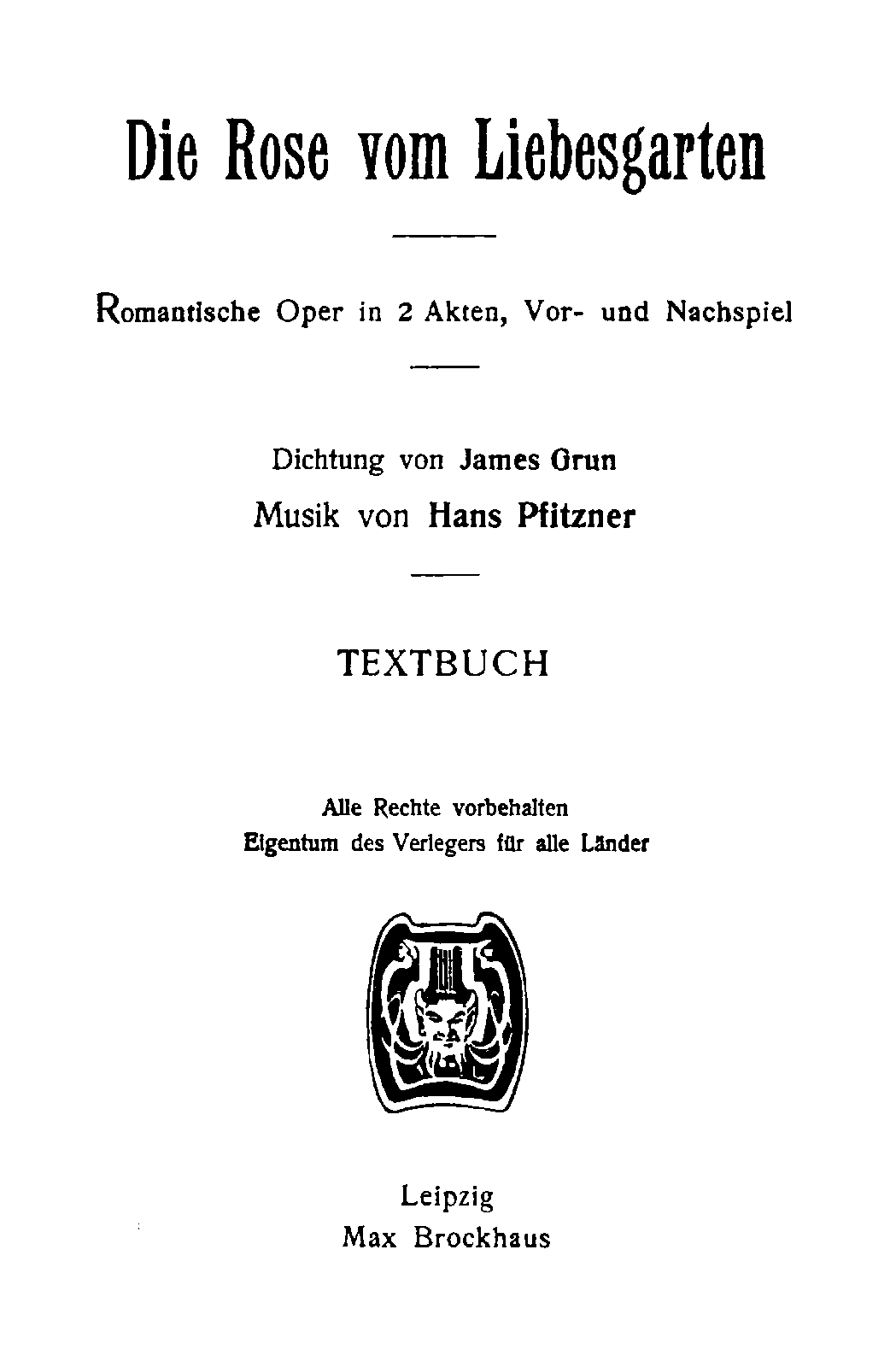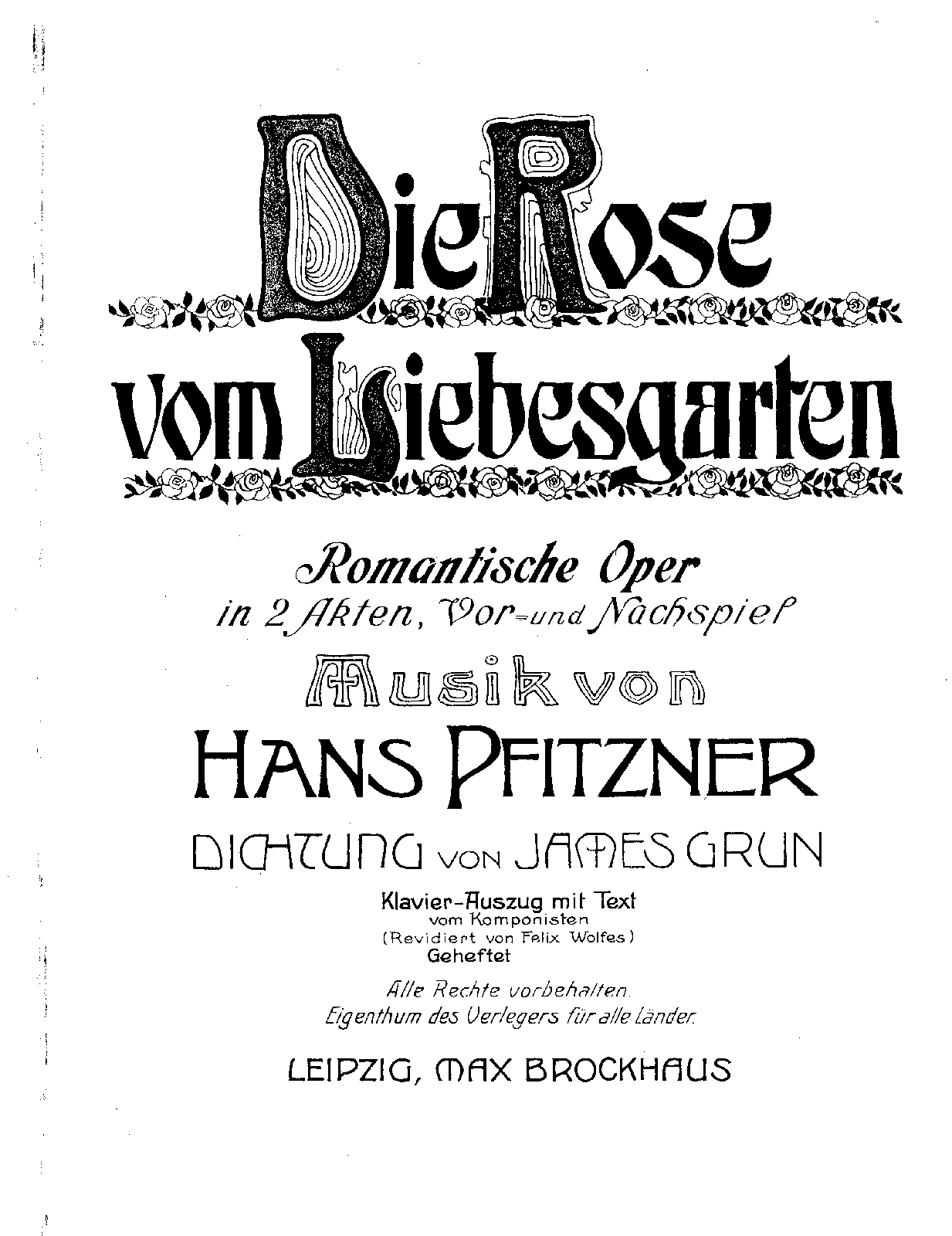 This file is part of the Sibley Mirroring Project. Copyright date of 1901 was for Pfitzner's original vocal score. Wolfes' edition is probably from around 1912 (noted in Hofmeister's 1915 Handbuch covering the years 1909-1913).