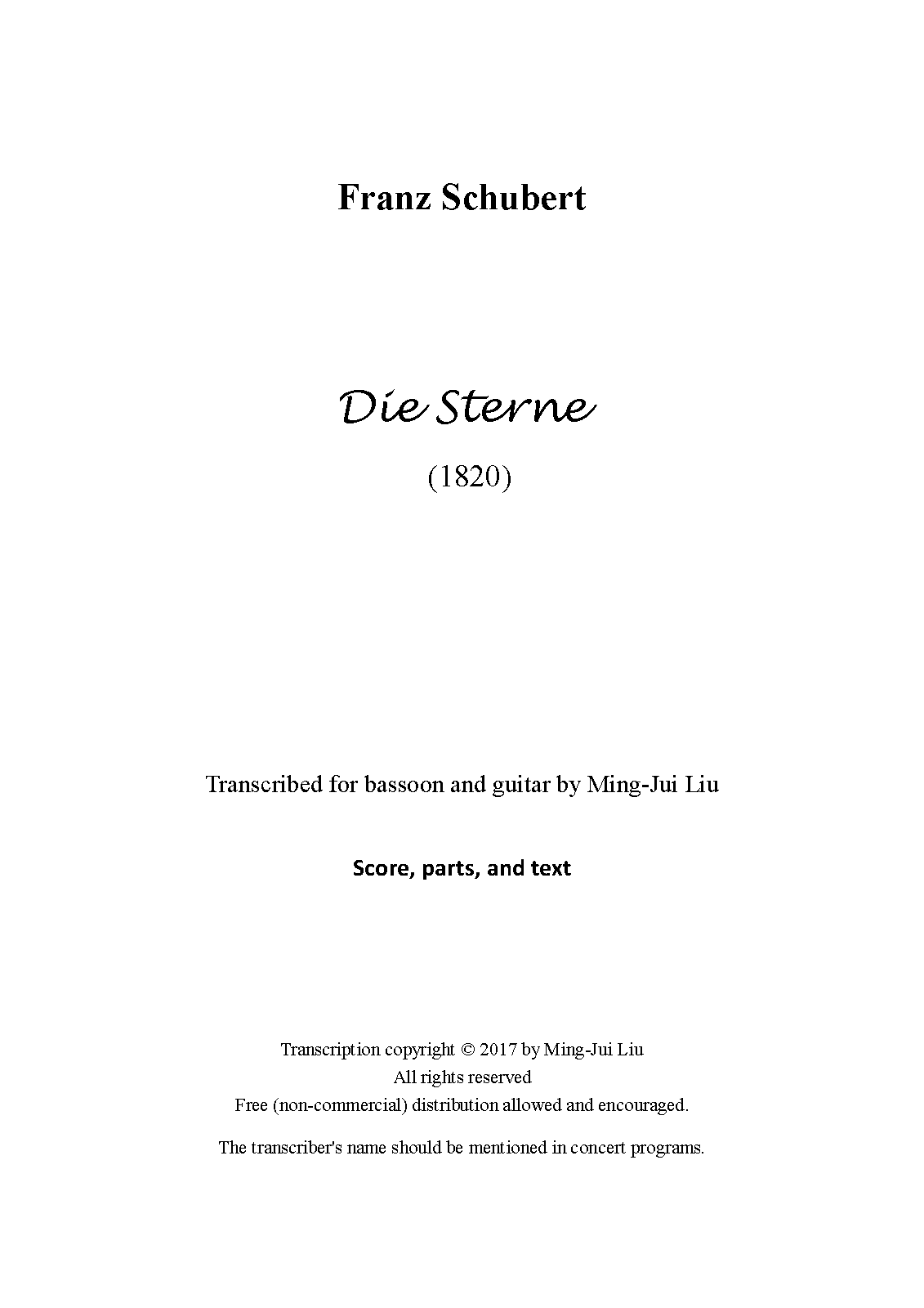 Misc. Notes The Peters edition (like the Diabelli first edition) only prints the first stanza of the poem.