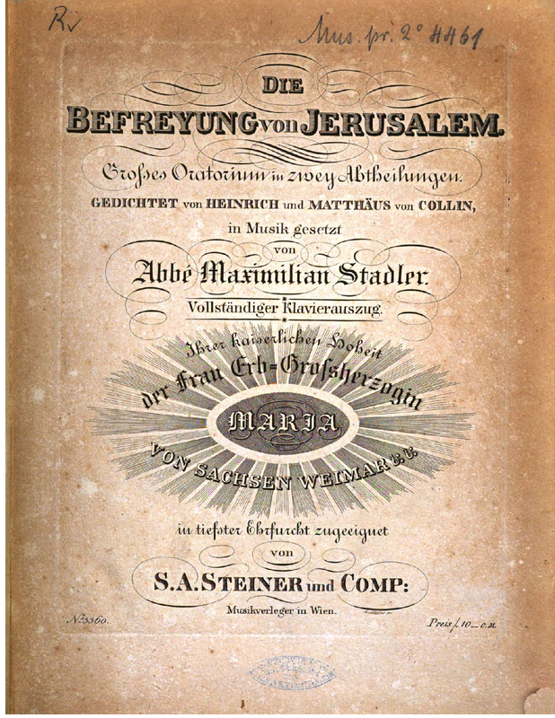 | Alternative. Title | Die Befreyung von Jerusalem. Grosses Oratorium in zwey Abtheilungen |
