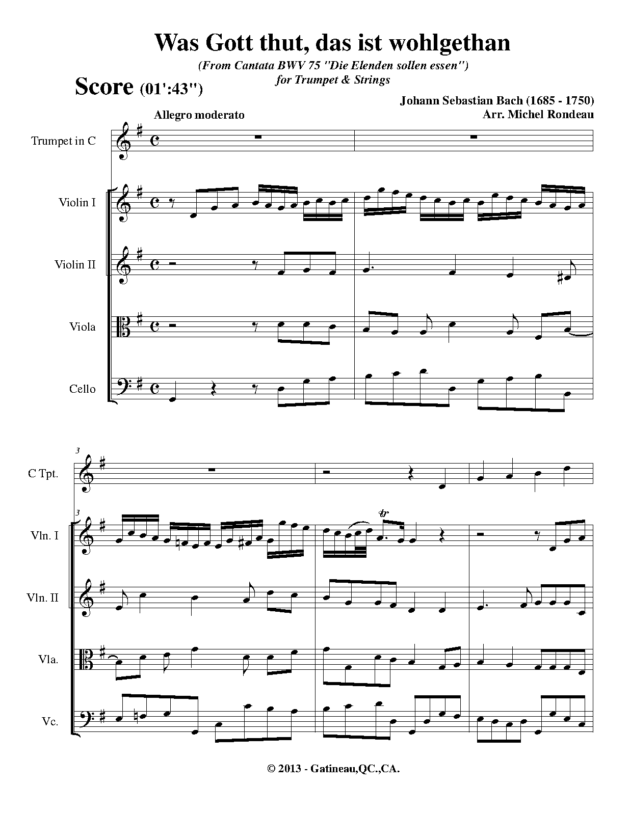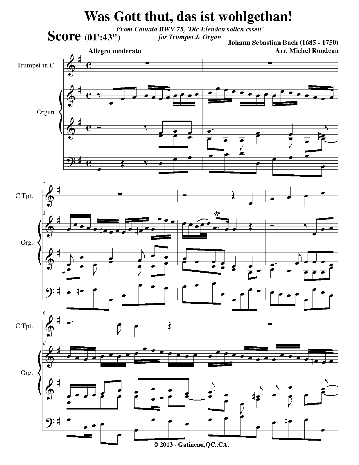 14 more: 2. Recitativo: 'Was hilft des Purpurs Majestät' • 3. Aria: 'Mein Jesus soll mein alles sein' • 4. Recitativo: 'Gott stürzet und erhöhet' • 5. Aria: 'Ich nehme mein Leiden' • 6. Recitativo: 'Indes schenkt Gott ein gut Gewissen' • 7. Chorale: 'Was Gott tut, das ist wohlgetan' • 8. Sinfonia • 9. Recitativo: 'Nur eines kränkt' • 10. Aria: 'Jesus macht mich geistlich reich' • 11. Recitativo: 'Wer nur in Jesu bleibt' • 12. Aria: 'Mein Herze glaubt und liebt' • 13. Recitativo: 'O Armut, der kein Reichtum gleicht!' • 14. Chorale: 'Was Gott tut, das ist wohlgetan' • Engraving files (MuseScore)