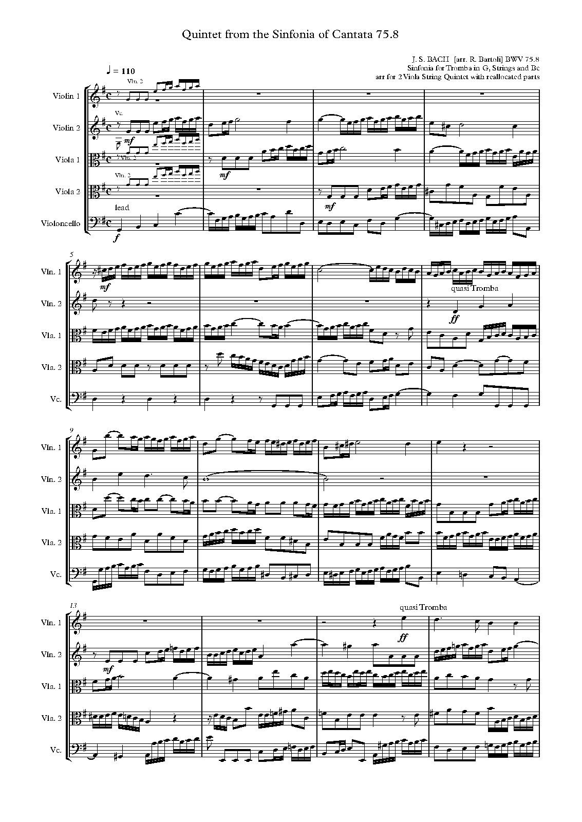 For 2 Violins, 2 Violas and Cello (Bartoli)
