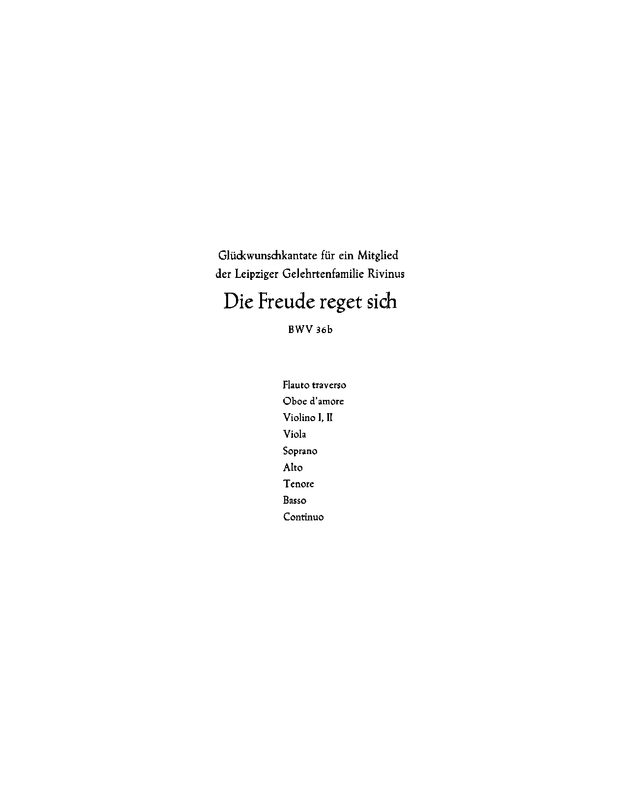 Extra Information Cantata for members of the Rivinius family. Incomplete.