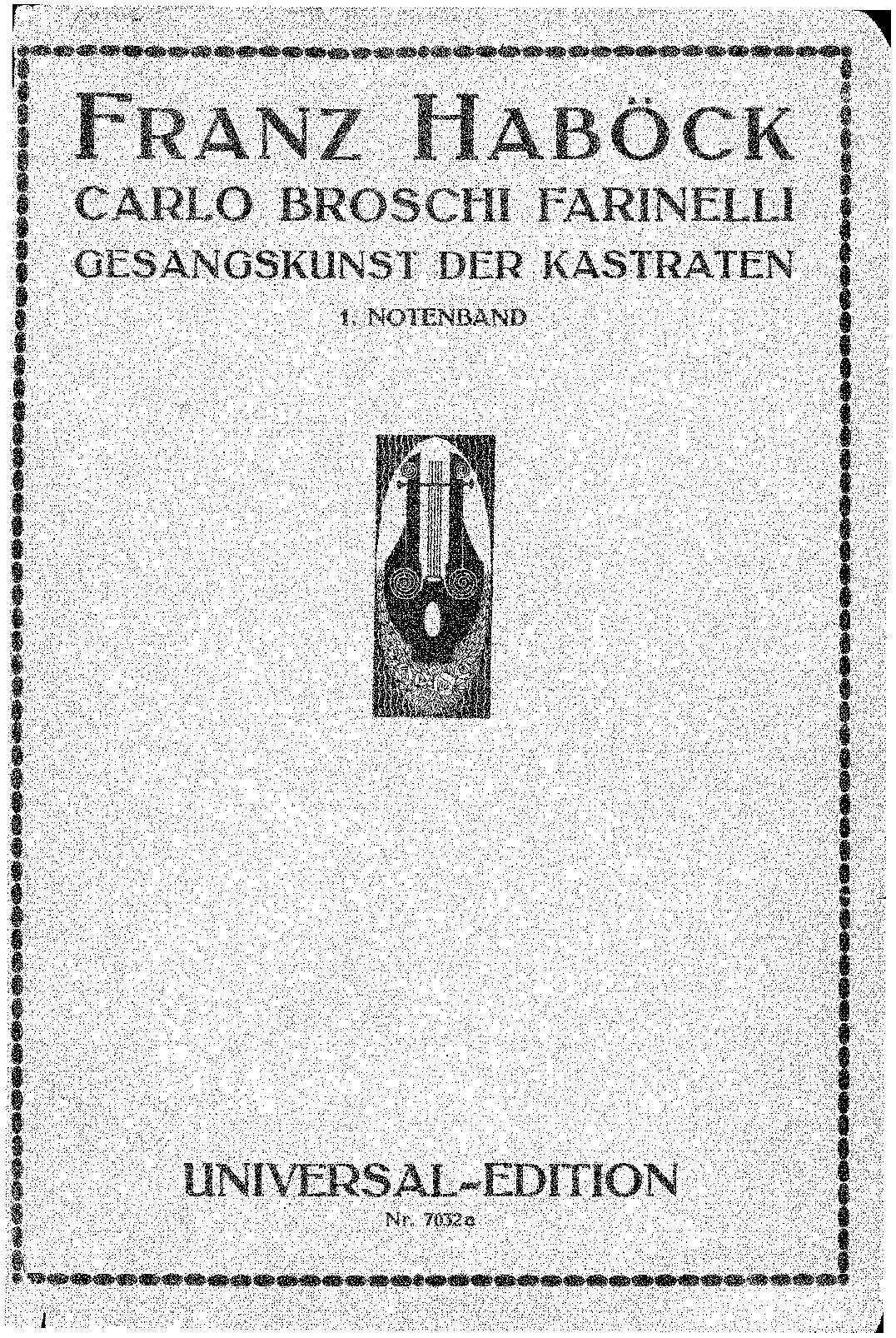 2 chapters: A. Die Kunst des Cavaliere Carlo Broschi Farinelli B. Farinellis berühmte Arien, eine Stimmbiographie in Beispielen. 42 arias (Nos.26-42 are Excerpts only):