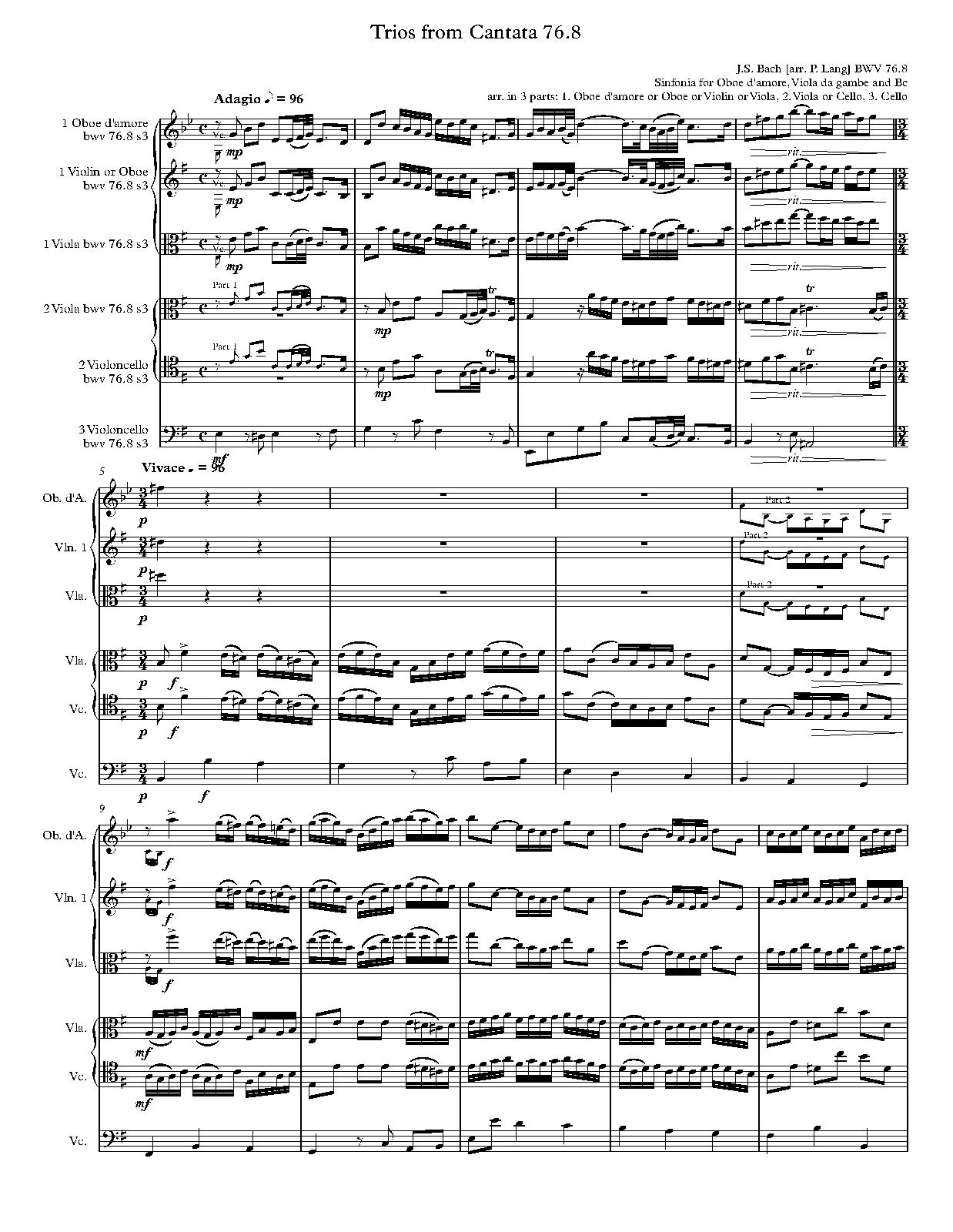 For Quartets: Oboe d'Amore ad lib. and Strings (Lang)