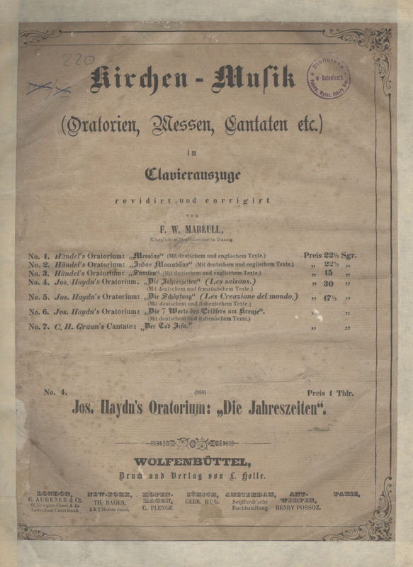Publisher. Info. Leipzig: Breitkopf und Härtel, n.d.