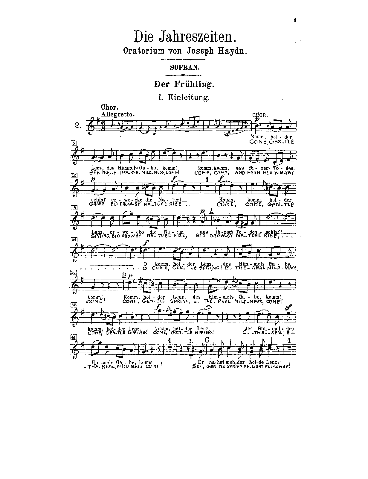 8 more: 2. Chor des Landvolks: Komm, holder Lenz! • 3. Rezitativ: Vom Widder strahlet • 4. Arie: Schon eilet froh der Akkermann • 5. Rezitativ: Der Landmann hat sein Werk vollbracht • 6. Terzett und Chor: Bittgesang: Sei nun gnädig, milder Himmel! • 7. Rezitativ: Erhört ist unser Fleh'n • 8. Freudenlied: O wie lieblich ist der Anblick • 8a. Chorus: Ewiger, Machtiger, Gutiger Gott!