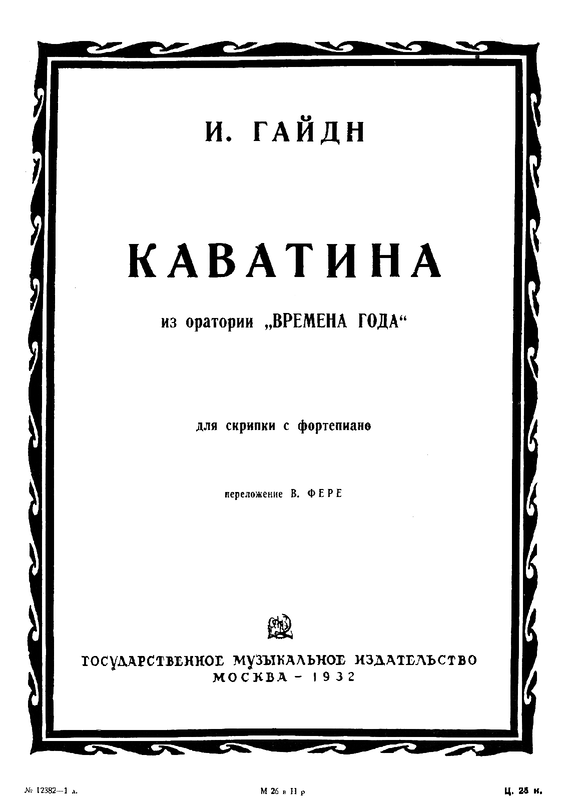 Publisher. Info. Moscow: Muzgiz, 1932. Plate М. 12382 Г.