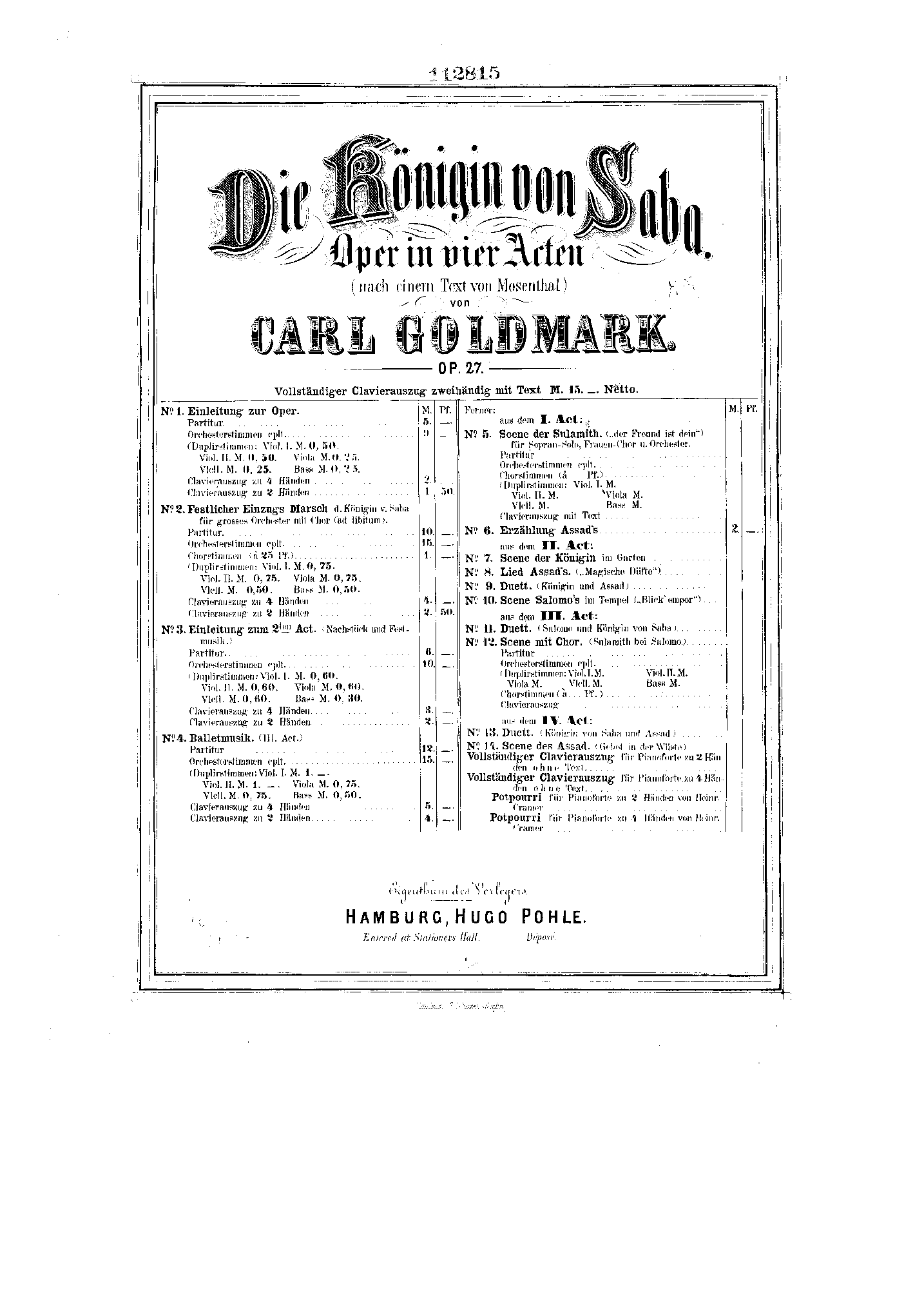 | Genre Categories | Operas; Theatrical Works; For voices, mixed chorus, orchestra; [11 more...]Scores featuring the voice; Scores featuring mixed chorus; Scores featuring the orchestra; For voices and chorus with orchestra; German language; For orchestra (arr); Scores featuring the orchestra (arr); For violin, piano (arr); For 2 players (arr); Scores featuring the violin (arr); Scores featuring the piano (arr) |