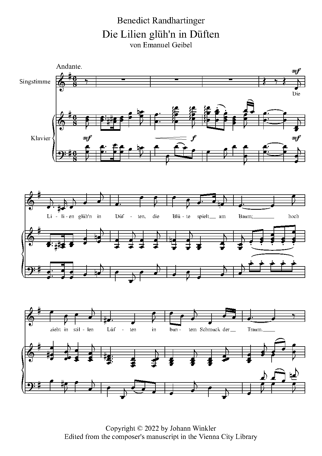 | Work Title | Die Lilien glüh'n in Düften |