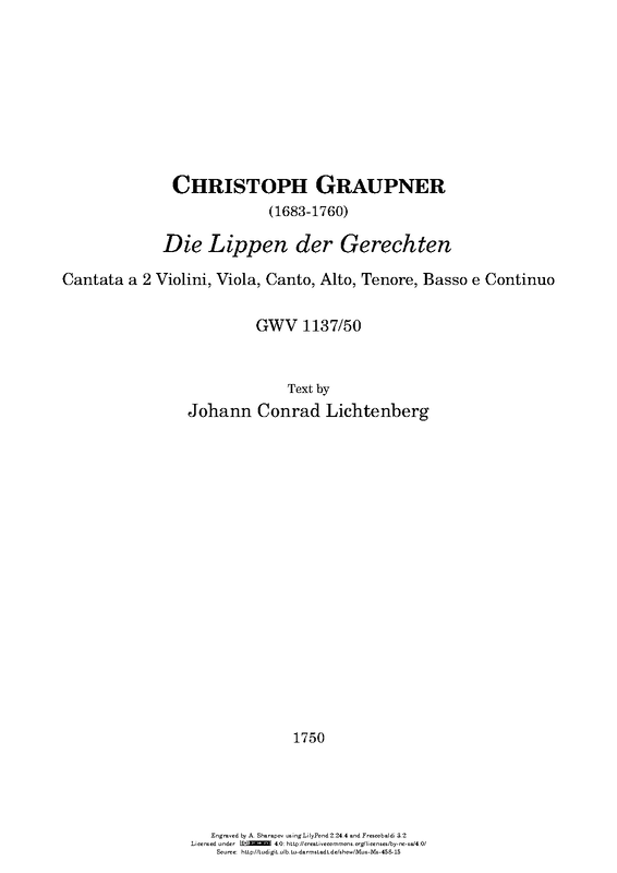 | Opus/Catalogue NumberOp./Cat. No. | GWV 1137/50 |